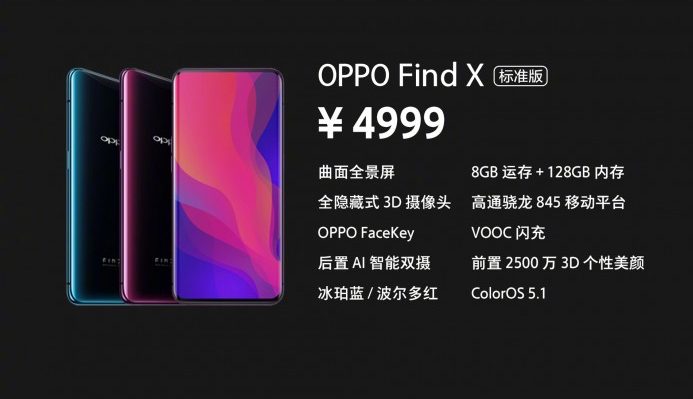 价格良心:93.8%屏占比的OPPO Find X 国行定价4999起
