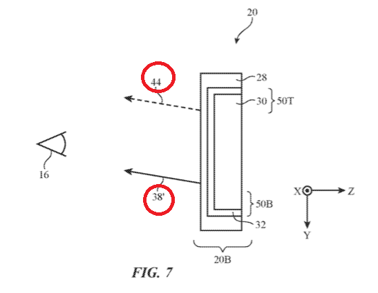 这些其实都是咱们常见的波导计划描绘,但只要这些的话,专利是不具有创造性的,接下来便是苹果在这篇专利中的立异点:在常见计划根底上增加必定结构的波导设备,让经过波导的光线能更多地进入人眼,前进光线的使用率: